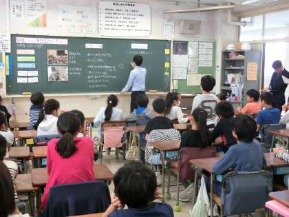 本年度世田谷区にはたくさんのフレッシュな先生方が採用されています。本校でも新規採用教員がおり今日はその研究授業日でした。特別活動の時間に、キャリア形成と自己実現を目的とした授業を行いました。4年生の子どもたちは活発に意見を交換し合い、「5年生に向けて自分は何ができるか」を考えることができました。たくさんの先生方に囲まれて緊張したと思いますが、本当によく頑張りましたね。