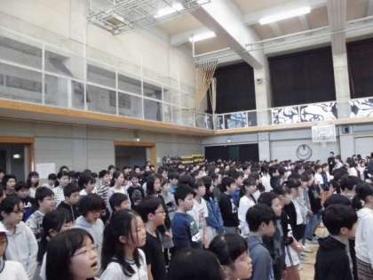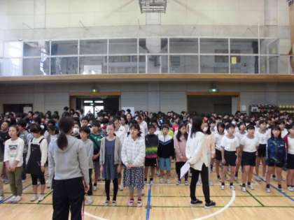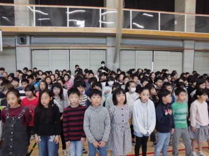 今日の音楽朝会で「もみじ」を全校合唱しました。