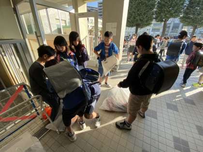 今日以外にも8日(金)と11日(月)の朝、昇降口で回収していますので、もし使わない、いらなくなった服がありましたらお持ちください。