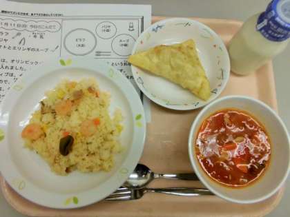 今日はオリンピック・パラリンピック献立ということで、モルディブ共和国の料理バジヤを取り入れました。