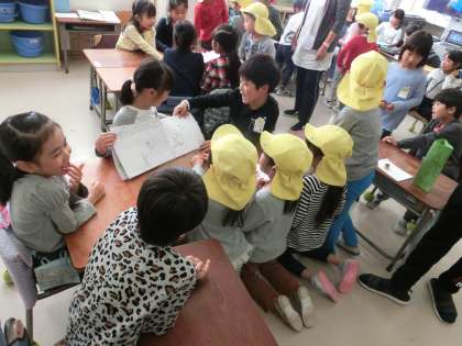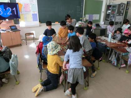 今日の1年生は幼保小交流会がありました。先日に引き続き残りの4つのクラスです。近隣の幼稚園や保育園の子どもたちのために、しっかりとお店を準備して、おもちゃやゲームで楽しませていました。1年生も入学式から半年以上が経ち、立派に成長してきたと感じました。