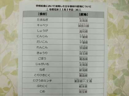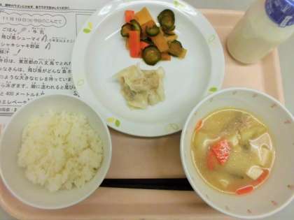 今日は、ごはん、牛乳、飛び魚シュウマイ、シャキシャキ野菜、豚汁です。