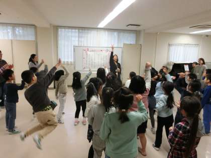 今日は楽しい音楽の体験がたくさんできました。中休みにはどんぐりさんによる「うたごえひろば」がありました。たくさんの子どもたちが集まって楽しく歌ったり振付をしたりして楽しみました。