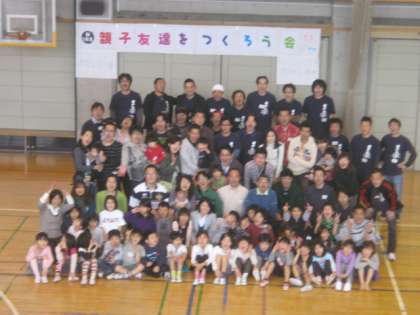 親子でお弁当、おいしいトン汁もおかわりしました。午後は、親たちは、ソフトバレー、子供たちは、ドッジボール大会で、熱く燃えました。最後はみんなで記念写真。1年生の親子が仲良くなれました。
