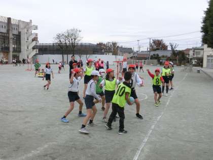 5年生の体育は校庭で「セストボール」を楽しんでしました。バスケットボールに似たゲームです。チームでたてた作戦を生かしてゲームを行っていました。ゲーム後の挨拶も素晴らしかったです。塚戸の子どもたち1019人は、寒さに負けず頑張っています。