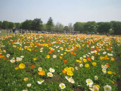 広い原っぱで記念写真を撮って、お弁当を食べました。元気に遊んでたくさん歩いた楽しい遠足でした。春の花がたくさん咲いて、きれいでした。でも、疲れたようでした。