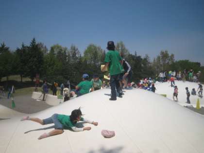 グループで遊び場を回って遊びました。虹のハンモック、雲の海、ドラゴンの砂山、太陽のピラミッドなど、楽しい遊び場でした。