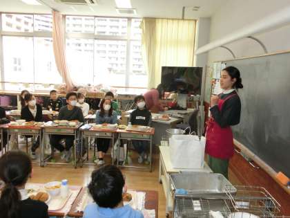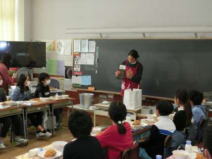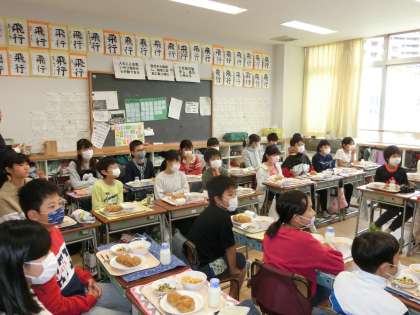 給食の時間を使って栄養士によるミニ授業(5分)が行われました。