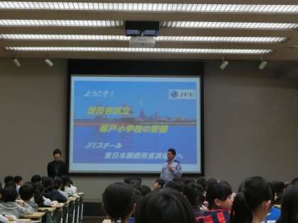 午後はJFEスチール東日本製鉄所を見学しました。製鉄所は迫力のある巨大施設がいくつもありました。石炭や鉄鉱石などの原材料を保管する場所、鉄鉱石を溶かして鉄をつくる施設、鉄をつくるにあたって発生するガスをためておく施設、発電所など本当に驚きがありました。残念ながら内部の撮影はできませんでしたが子どもたちの記憶に残ったことでしょう。今回、快く社会科見学を引き受けていただいた「花王川崎工場」「JFEスチール東日本製鉄所」の皆様、ありがとうございました。