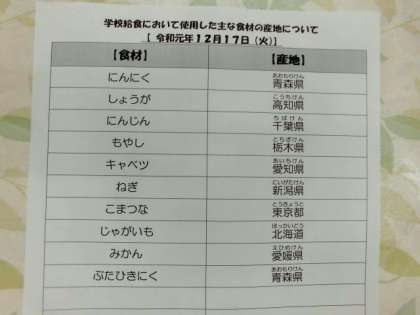 今日は、みそラーメン、牛乳、煮たまご、青のりポテト、みかんです。