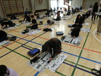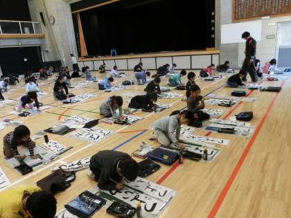 今日は3・4年生の書き初め大会が体育館でありました。3年生は「つよい力」、4年生は「美しい空」を心を込めて真剣に書きました。170名の児童がいるとは思えないほど静かでしたし、この大勢が一斉に書く書き初めは圧巻でした。書き初め展は1月14日(火)〜1月28日(火)になります。是非ご覧ください。