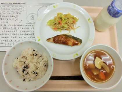 小正月の献立としてあずきごはんを取り入れています。
