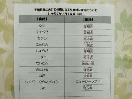 1/15 今日の給食
