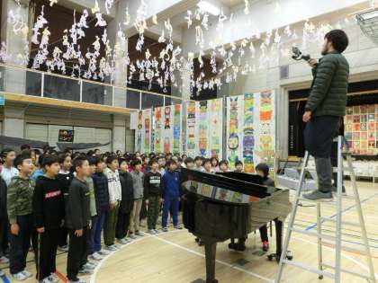 いよいよ明日は学習発表会初日(児童館賞日)です。体育館、家庭科室の展示準備はほぼ完了。最終確認をしている段階です。あとは地域の方々、PTAの方々の作品を展示を待つばかりです。今日は、3年生、4年生が自分たちの作品の前で合唱する様子を撮影しました。心が一つになった素晴らしい歌声でした。当日Welcomeソングとして受付でこの動画を流します。ミニ学芸員の5、6年生も練習を重ねました。展示だけではなく様々な取り組みもしています。そちらもお楽しみください。