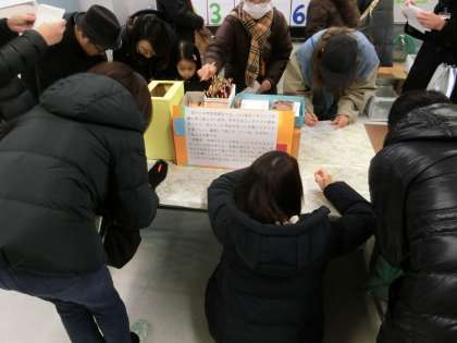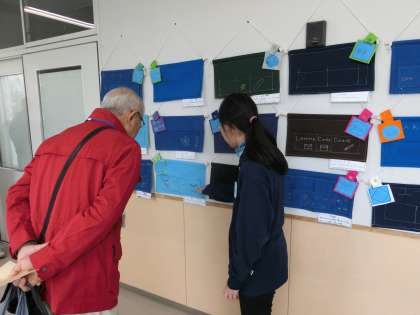 「緊張する〜。」と言いながらも、ほぼ初対面の方々に一生懸命に作品の解説をする姿はとても立派ですし、とても微笑ましい光景です。ご来場された方々には「いいねカード」をたくさん書いていただきました。ありがとうございました。