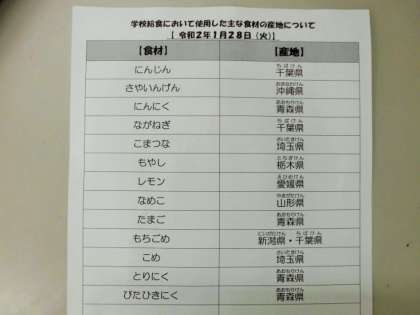 1/28 今日の給食