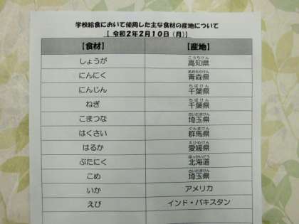 2/10 今日の給食