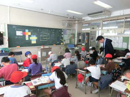 2月もあっという間に後半に入りました。子どもたちは今日も集中して学習していました。算数は2年生と5年生で図形の学習をしています。デジタル教科書を使って立体が展開する様子を動画で見たり、実際に展開図を描いたりして学習していました。デジタルの時代ではありますが、アナログも大切な教具です。両方をバランスよく取り入れて、理解を深めていました。インフルエンザなどの感染症も心配な季節です。十分な休養とうがい手洗いの励行をご家庭でもお願いいたします。
