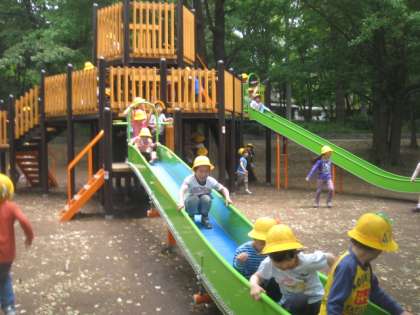 クラスごと、いろんな場所に行って遊びました。みんなで遊ぶのは楽しいです。友達もたくさんできます。元気よく遊びました。