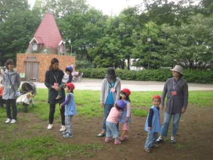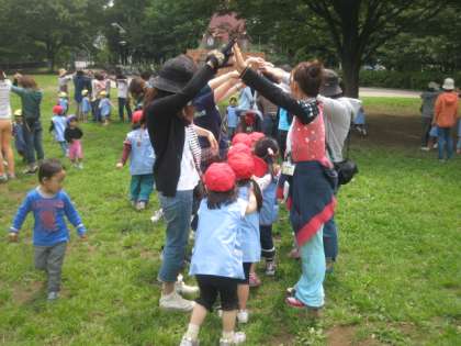 年少さんは、親子でスキンシップができる遊びをたくさんしました。集合写真もしっかりとれました。親子同士もたくさん知りあえることができた遠足になりました。