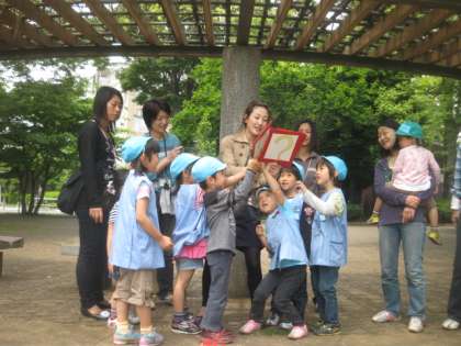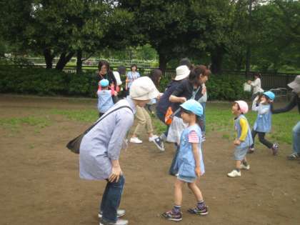 今日は、幼稚園の親子遠足で、祖師谷公園に行ってきました。臼曇りの遠足日和でした。年長さんは、集合写真をすばやく撮って、親子で対抗するゲームを中心に遊びました。その後、グループに分かれて、親子でオリエンテーリングです。協力する楽しさを学びました。