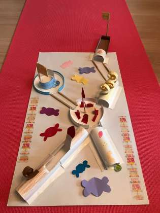 工夫したところは、スタートとゴールがふたつずつあるところです。ゴールは、チョコレートとロールケーキで、かわいくしました!