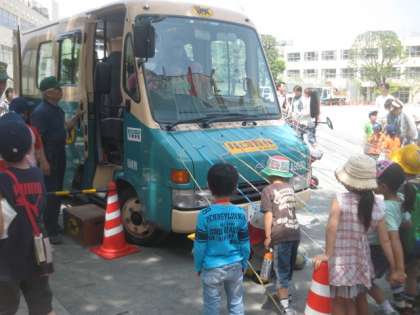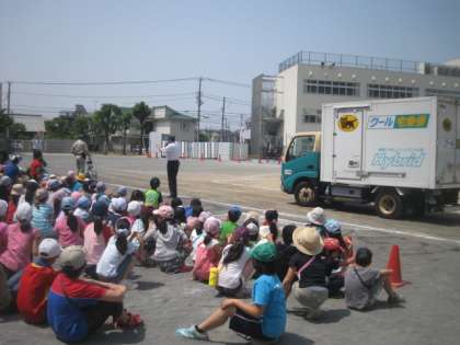 PTAの郊外委員会が主催する「交通安全教室」がありました。車の死角について知り、どうすれば安全が守れるか、体験を通して学びました。暑かったですが、しっかり学ぶことができました。