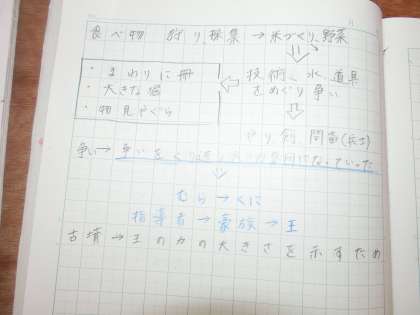 6年生教室に授業の様子を見に行きました。社会科や総合的な学習の時間の授業を行っていました。社会科、総合的な学習の時間と調べる内容やめあては違いますが、みんな真剣に取り組んでいました。丁寧にまとめたノートを発見しましたのでご紹介します。