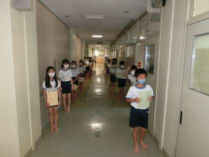 写真をご覧になってお分かりの通り、子どもたちはしっかり間隔をとって待っています。