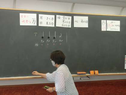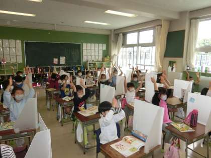 2年生、3年生の教室では音楽の授業が行われていました。しばらくは音楽室ではなく教室での授業です。まだ、大きな声を出して歌うことはできませんので、リズムに合わせて手拍子をすることや鑑賞の授業が多くなります。大きな声で元気よく、仲間と声を合わせて歌うことができる日が来ることを願うばかりです。