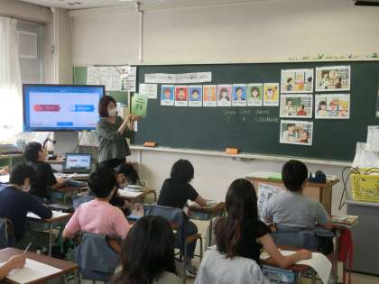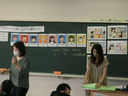 5、6年生の英語の授業では英語専科の先生と英語支援員の先生と2人で行います。
