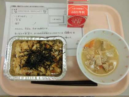 今日は、こぎつねずし、牛乳、豚汁です。