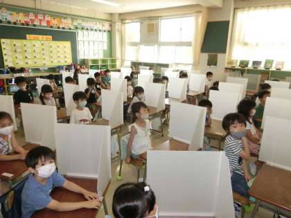 通常登校2週目に入りました。毎週、月曜日は全校朝会があります。今までは、校庭や体育館で行ってきましたが、新型コロナウイルス感染症拡大防止のためテレビ放送での全校朝会を行いました。校長先生から「フワフワ言葉とチクチク言葉」というお話がありました。簡単に言うと、フワフワ言葉とは優しい言葉、声掛けです。チクチク言葉は相手を傷つける思いやりのない言葉です。友達に対して思いやりあふれるフワフワ言葉が飛び交うクラス、学校にしていきたいです。