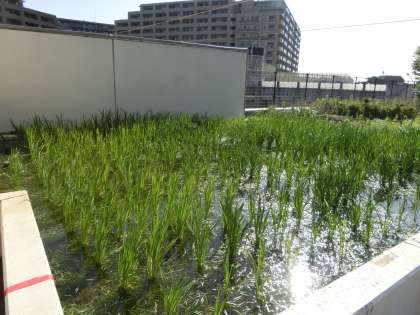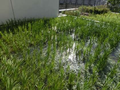 塚戸小学校南校舎屋上には田んぼがあります。毎年、学校運営委員会、地域の皆さんのご協力により米作りを行っています。今年は、臨時休校中のため、地域の方々が田植えまでしていただきました。今後は、地域の方々のご協力をいただきながら5年生が総合的な学習の時間の中で、観察や草取りをはじめとした手入れ、収穫、脱穀等を行います。
