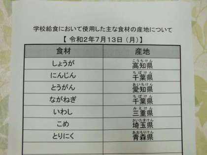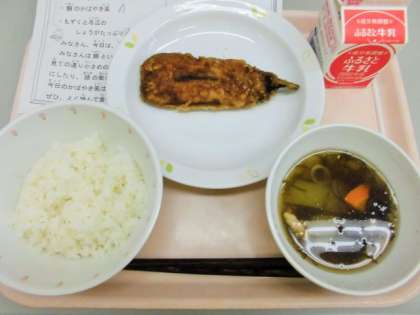 今日は、ごはん、牛乳、鰯のかば焼き風、冬瓜ともずくの生姜たっぷり汁です。