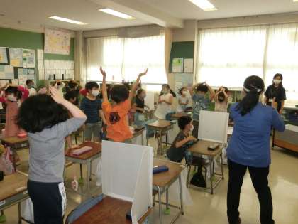 2年生の外国語学習を参観しました。今日は、天気の聞き方とこたえ方について学習しました。ゲームなどを取り入れて楽しく取り組むことができました。1〜4年生まではALTのレベッカ先生と担任とのTT学習です。
