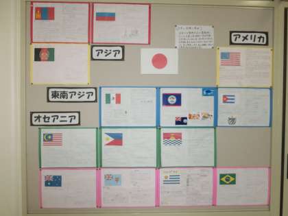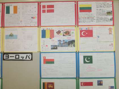 道徳の授業「オリンピック国旗にこめられた思い」から発展し、一人一人が世界各国の国を調べていきました。掲示物を詳しく読むと、その国の国旗や基本情報をはじめ、オリンピックでの成績等がかいてありました。6年生の担任に聞いたところ、一人一人が家庭学習として取り組んだそうです。素晴らしい学習だと思いました。漢字や算数の計算だけが家庭学習ではありません。高学年になると自分でテーマを決めて、自分で課題解決する学習も大切ですし、身に付けさせていきたいと思います。