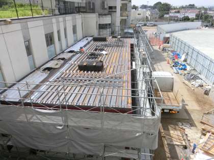 8月26日(水)新BOP棟建設、屋根の工事に入っています!