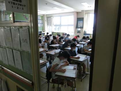今日、9月8日(火)4~5年生を対象に学習習得確認調査を実施しました。昨年度の学習の定着度を確認する調査(テスト)です。本来は4月に実施する予定でありましたが、新型コロナウイルスによる休校のため9月の実施となりました。真剣に取り組む姿が見られました。確認調査(テスト)は点数をはかるものだけではなく、自分の学びを知ることもできます。また、定着具合によっては教師の指導法を見つめなおす機会ともなります。今後も、子どもたちの確かな学びとなるよう教材研究に励み「わかる、できる、楽しい」授業を目指してまいります。