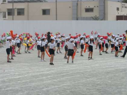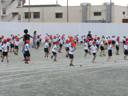 1年も2年生も楽しく踊っていました。先生方も熱心に指導しています。