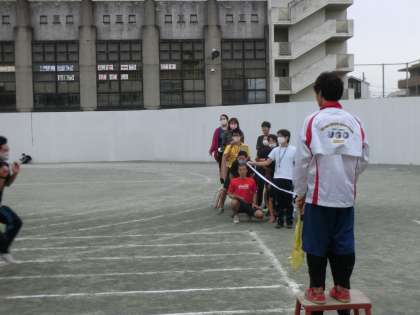 児童が帰った放課後に審判講習会を行いました。運動発表会での「徒競走・かけっこ」で着順判定を正確に行うための練習です。間隔があり着順が分かりやすいレースもあれば、競り合った勝負になることもあります。人間が判定をします。見る角度によっては順位が違って見えることもあります。教職員も子どもたちのために真剣に取り組んでいます。