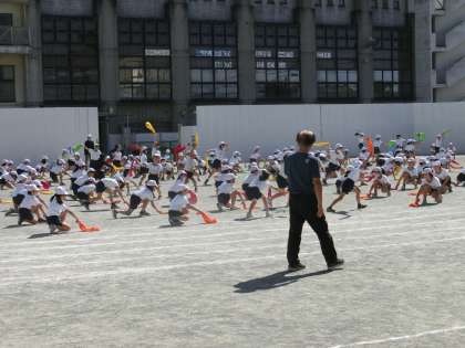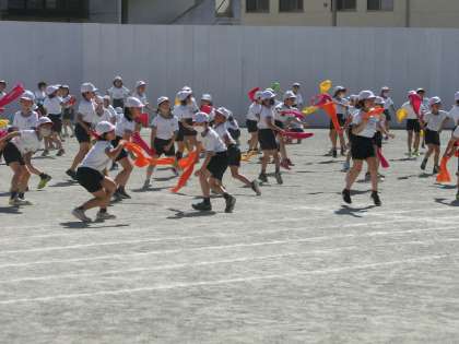 2年生のタオルを使った表現です。青空と色とりどりのタオルが映えます。当日が楽しみです。