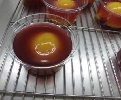 今日は、十五夜なので、ぶどうゼリーと黄桃(缶詰)で夜空に浮かぶ満月をイメージしたお月見ゼリーを取り入れました。