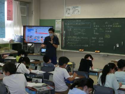 5年生の教室をのぞくと社会科の学習を行っていました。今日は「工業とは?」について学び、身の回りの工業製品を調べていました。ラジカセやスマートフォンも工業製品、缶詰やお菓子も工業製品です。学習が始まったばかりです。これから教科書や資料集を用いて調べたり、先生に教えてもらったりして学習を進めていきます。