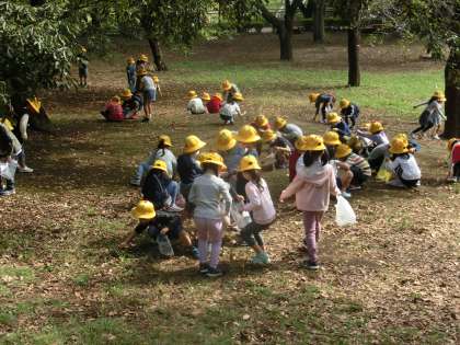 1年生の生活科見学で祖師谷公園に行きました。生活科の見学ですので遠足とは違います。今回は、秋を探しに行くことが目的でした。その一環で、どんぐりや落ち葉や枝拾いやをしました。班ごとで行動し、夢中になって拾い集める姿が微笑ましく思いました。このあと、あさがおのつるを使ってリースをつくるとのこと。今後の学習も楽しみです。
