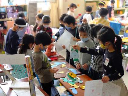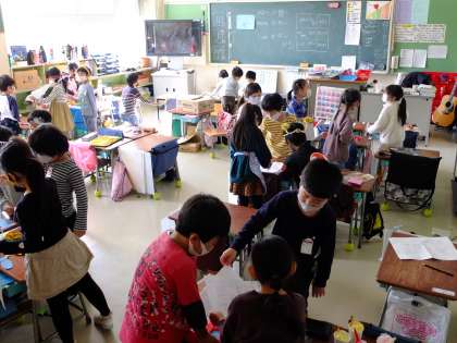 1年1組では、10月9日の学級会で「お祭りをしよう」という議題を話し合いました。決定したことが実現されるよう準備を重ね、今日が「お祭り」実行の日でした。
