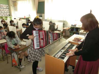 11月4日(水)5年生音楽「静かにねむれ アコーディオンテスト」