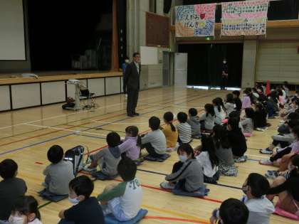 塚戸小では毎年、セーフティー教室を行っています。1、2年生のセーフティー教室では、成城警察署スクールサポーターの齋藤さんをお招きして行いました。知らない人にはついて行かないことなどDVDを見ながら学びました。来週13日までにすべての学年でセーフティー教室を行います。