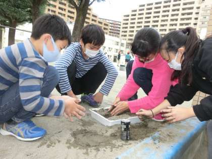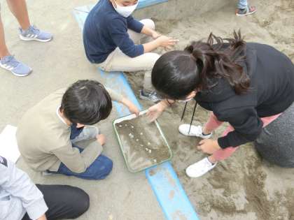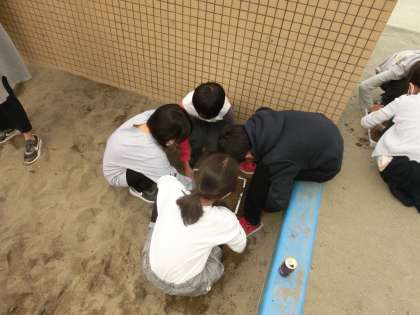 5年生の理科では「流れる水のはたらき」の学習を行っています。流れる水のはたらきにより、上流の大きな石は、中流、下流に行くにしたがって小さな丸みを帯びた石になることを学びました。今日は、流れる水は、土を運ぶ働きや地面を削る働きなどについて学ぶことができました。
