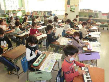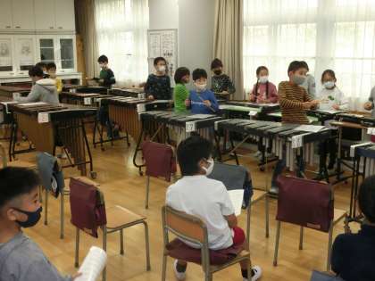 1年生、2年生、3年生と音楽の授業をしているクラスがありました。それぞれの学年の発達段階によって使う楽器や曲の難易度が違ってきます。3年生は「あの雲のように」という曲をオルガンや木琴を使って演奏していました。さすが、3年生です!
